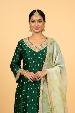 Naseebo Enchanted Emerald Silk Brocade Kurta Set