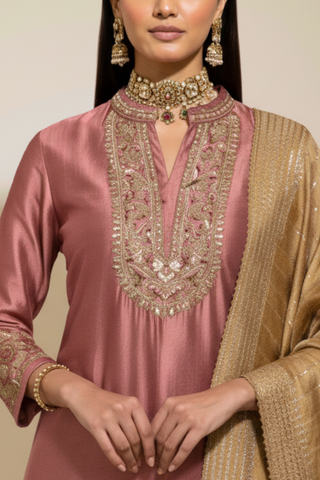Brown Midnight Mocha Tissue Chanderi Kurta Set