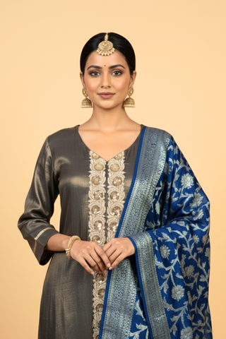 Brown Midnight Mocha Tissue Chanderi Kurta Set