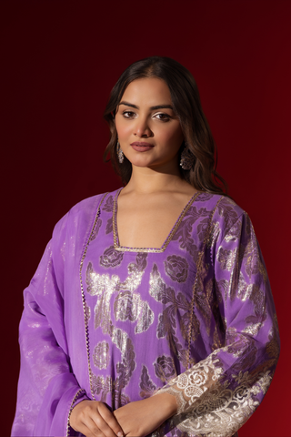 Naseebo Purple Majesty Cotton Silk Lurex Kurta Set