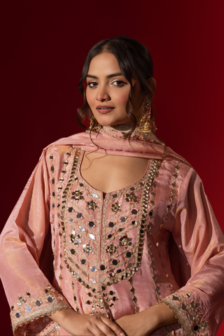 Naseebo Powder Pink Cotton Silk Lurex Kurta Set