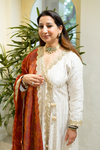 Naseebo Ivory Ember Silk Angrakha Kurta Set