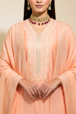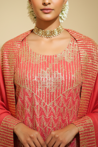 Naseebo Coral Glow Chanderi Silk Kurta Set
