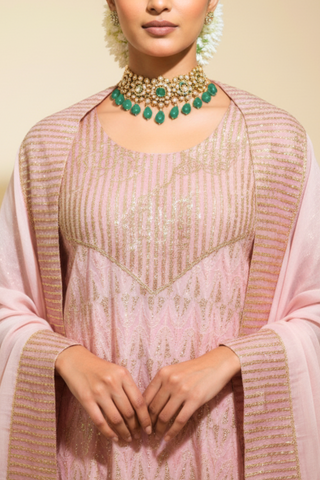 Naseebo Powder Pink Cotton Silk Lurex Kurta Set