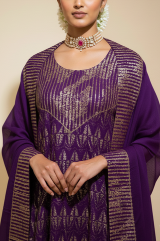 Naseebo Purple Majesty Cotton Silk Lurex Kurta Set