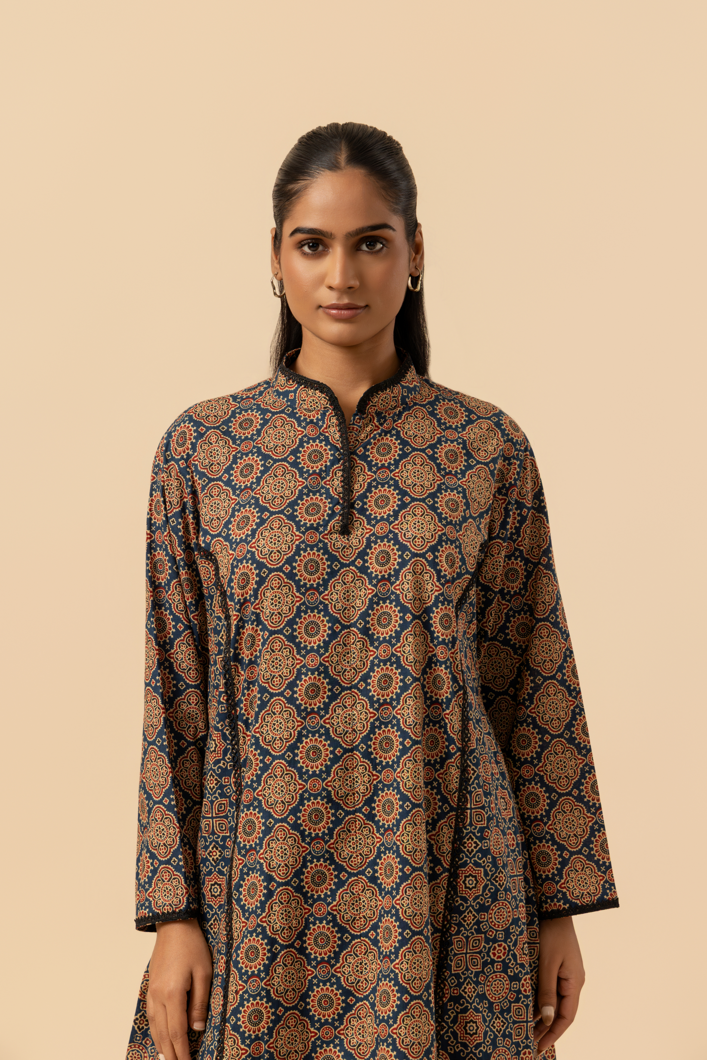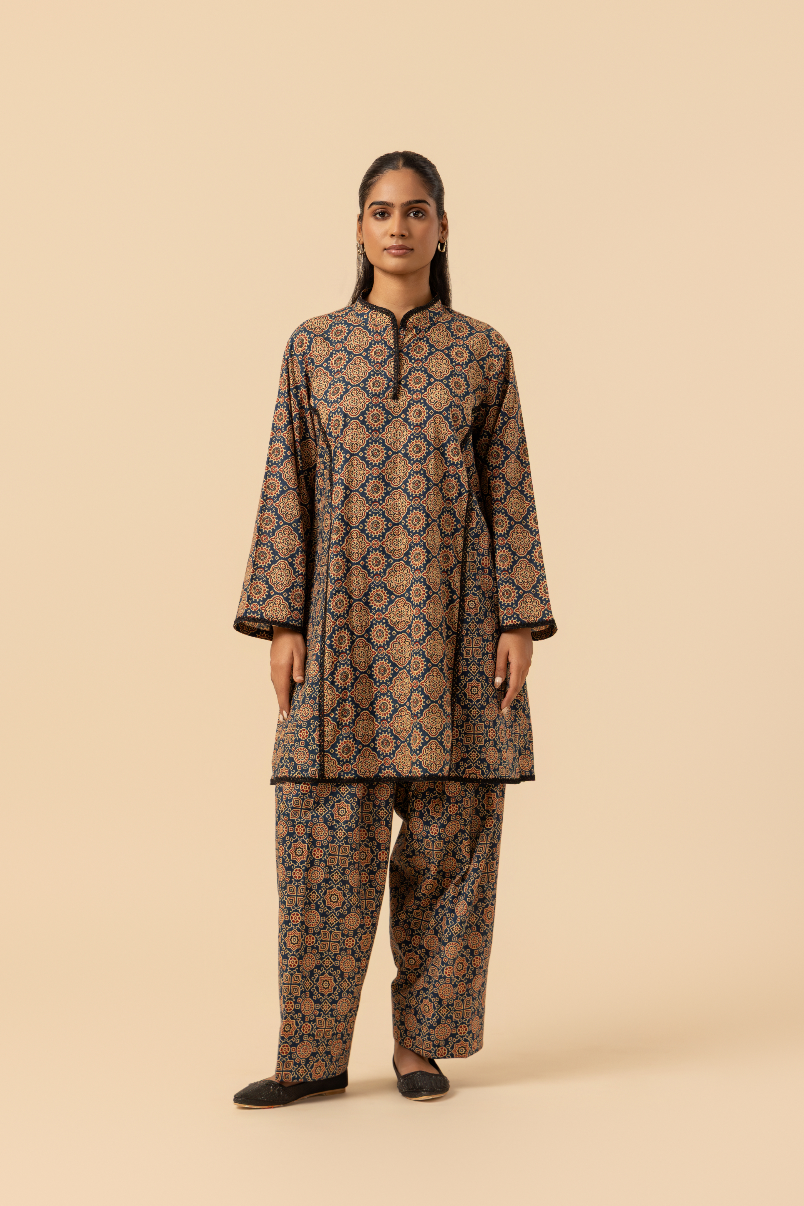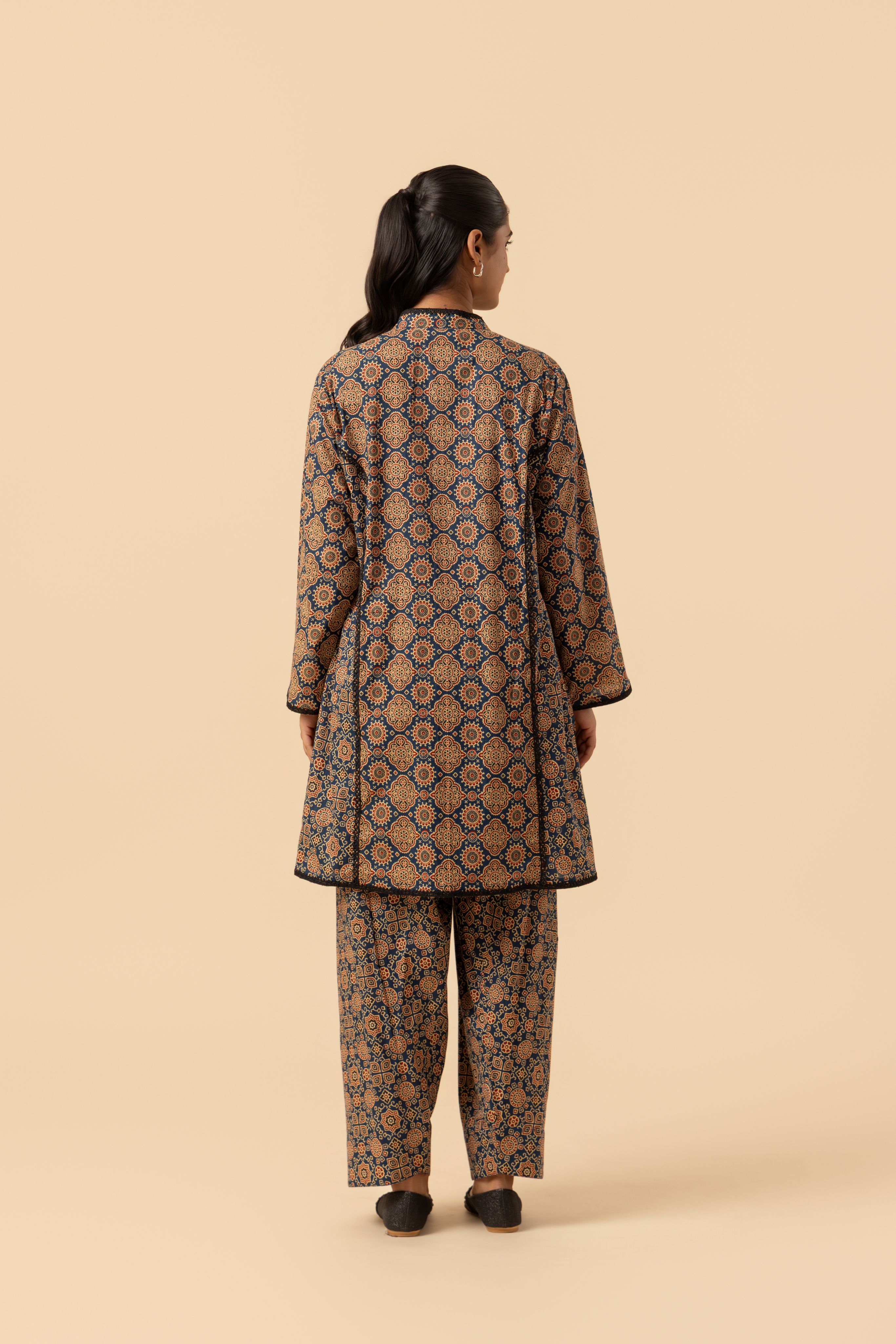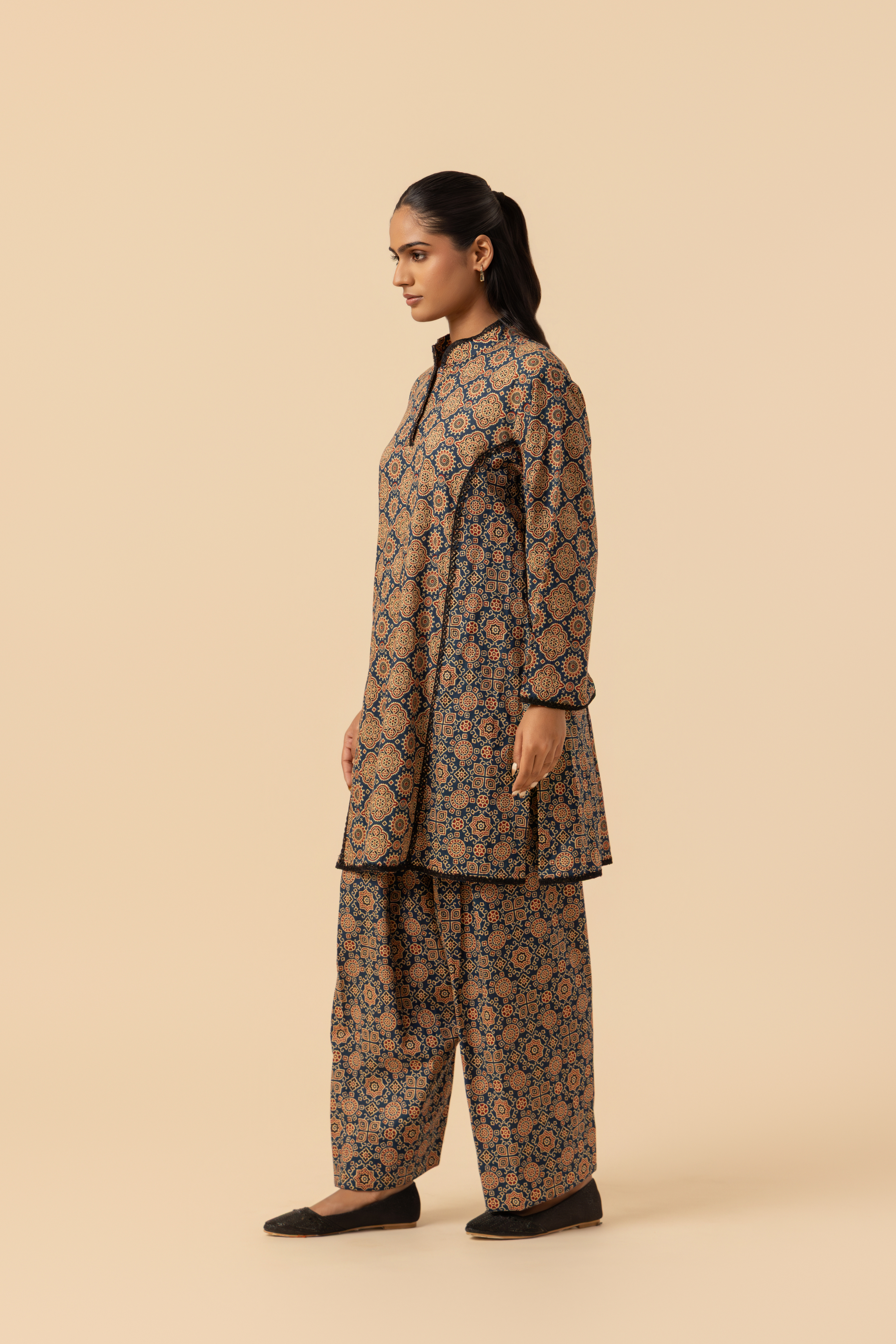 Naseebo Indigo Maze Ajrakh Printed Farshi Coord Set
