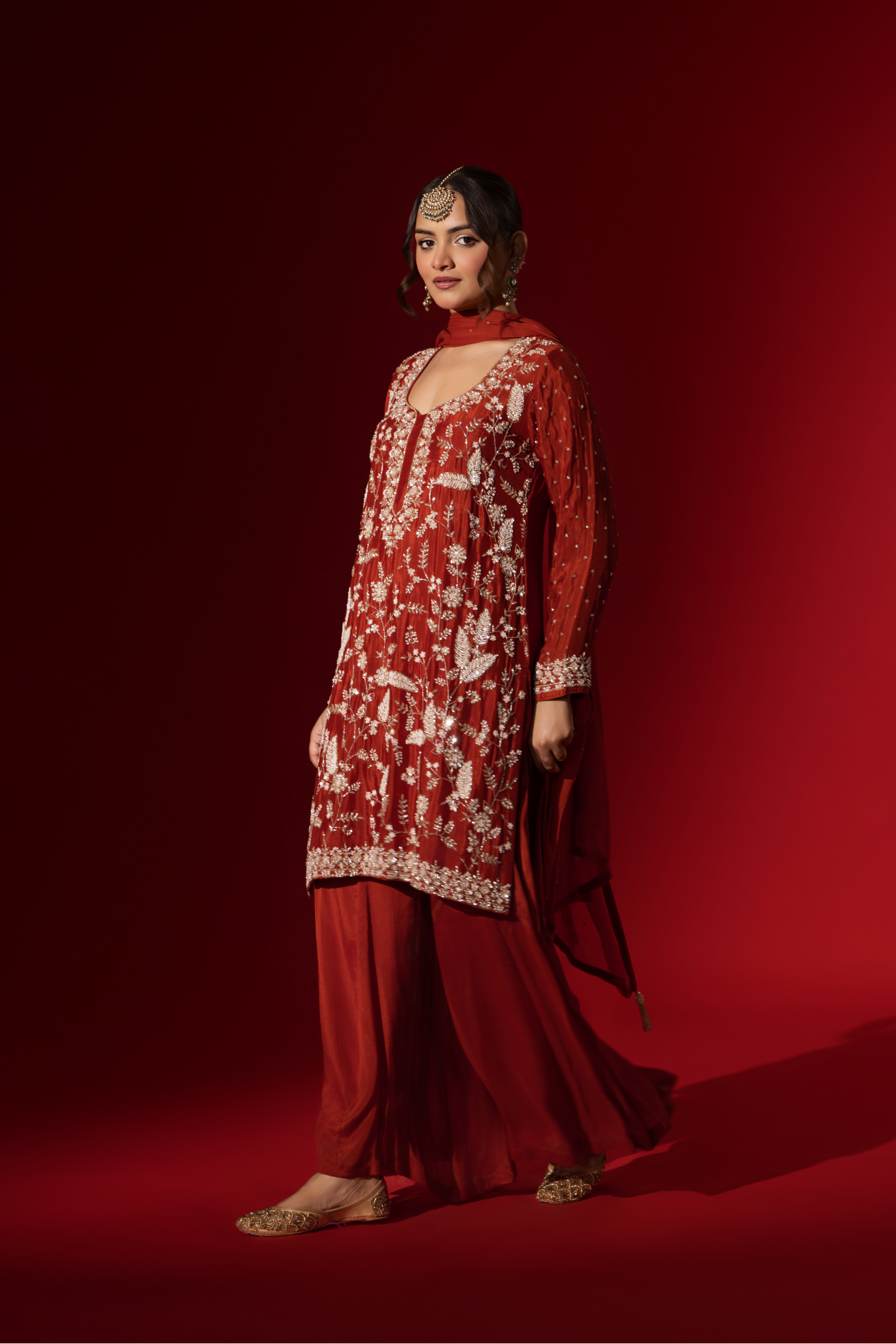 Naseebo Crimson Royale Red Embroidered Kurta Set